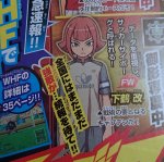 Ensuite, une double page « Inazuma News » est dédiée à Inazuma Eleven à proprement parler. Elle ne nous apprend rien de nouveau, mais elle nous apporte tout de même une nouvelle illustration en couleur d’Atsushi Ooba (également publié sur son Twitter), ainsi qu’un artwork d’Arata Shimozuru, le capitaine de Mikage Sennou, que Raimon affrontera dans le prochain épisode de l’anime.