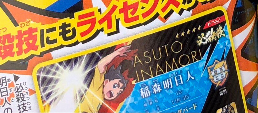 Cela ne veut pas dire que les autres équipes seront délaissées pour autant : on peut en effet voir sur le côté de la boîte de boosters des cartes d’Asuto et Mansaku de Raimon. Sur l’illustration de sa carte, Asuto exécute une technique de tir. Il pourrait s’agir de la technique Cross Drive, qui n’est pas encore apparue dans l’anime mais était présente dans la précédente série de cartes, mais après enquête il pourrait s’agir d’une nouvelle technique (voir plus bas). Asuto pourrait donc l’apprendre prochainement dans l’anime.