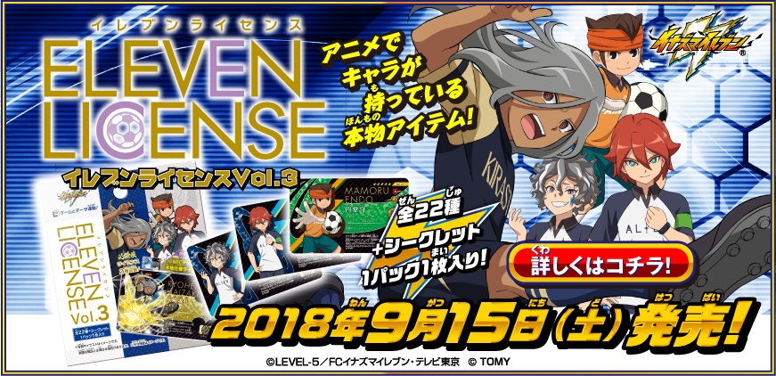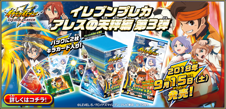 Alors que l’on approche de la fin de l’anime, Takara Tomy a dévoilé les prochaines séries de cartes Eleven PlayCa et Eleven License, qui pourraient bien par ailleurs être les dernières pour Ares.
