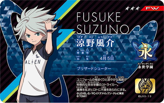 R : « Il déteste que Hiroto ne soit pas capable de travailler en équipe »… En effet, ce n’est pas ce qu’on attend de la présentation officielle d’un joueur de football. Comme il s’agit d’une carte vue et possédée par des fans, qu’il y montre clairement sa mésentente avec Hiroto peut s’avérer problématique. Lors du match entre Raimon et Eisei, même la coach est soulagée de les voir faire la paix.