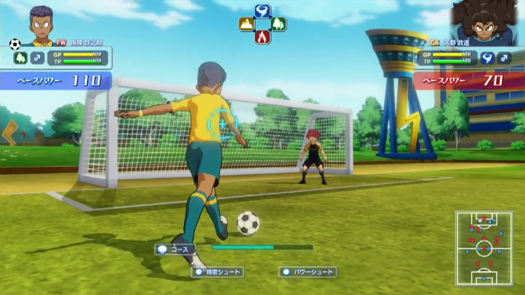 Dans Inazuma Eleven, l’état d’esprit autour des supertechniques a toujours été « tout le monde les utilise », « sans supertechnique, on est désavantagé ». En revanche, il me semblait difficile de développer cette nouvelle histoire tout en gardant cette idée où « tout le monde a des supertechniques », c’est pour quoi je me suis plus orienté vers une approche où il faut plutôt « les utiliser à bon escient » et « déterminer le meilleur moment pour les utiliser ». L’idée est que, comme leur nom l’indique (VO: hissatsu waza, littéralement « technique qui tue à coup sûr »), ces techniques doivent être décisives lors d’un affrontement. Mais bon, comparé aux autres jeux, vous aurez quand même un paquet d’opportunités de vous en servir (rires). La « Jauge de Tension » permet de réaliser cette vision de « réfléchir à quand utiliser une technique ». Tous les joueurs de l’équipe utilisent leurs techniques à l’aide de cette Jauge de Tension partagée. En alternant entre « actions qui accumulent » et « actions qui consomment » (les techniques), en se déplaçant efficacement et en coordonnant bien ses techniques, il est possible d’utiliser sa Tension de manière continue. De plus, à l’issue de l’équilibrage du jeu, il y a de grandes chances que nous ajoutions un temps de recharge aux techniques.