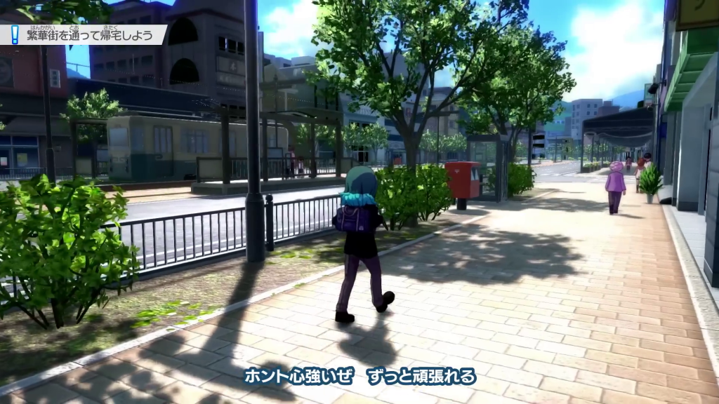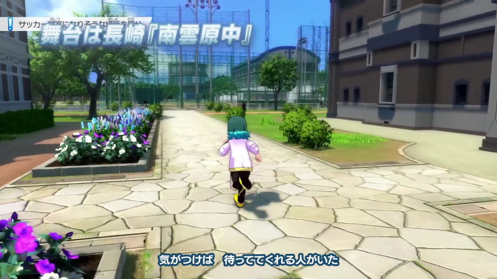 Le mode Histoire de Victory Road proposera d’explorer un monde en 3D à taille réelle. En plus de l’enceinte du collège Nagumohara, il sera visiblement possible d’explorer la ville, et même de se déplacer en tramway — on imagine qu’il pourrait s’agir d’un moyen de se déplacer rapidement d’une zone à l’autre de la ville, et que la ville pourrait ainsi comme dans les jeux précédents être séparée en plusieurs zones, plutôt qu’un véritable monde ouvert. À noter que sur son blog, en parlant de la difficulté d’incorporer des dialectes régionaux dans l’écriture du jeu, Hino évoque le fait de voyager à travers le pays — sera-t-on amené à visiter d’autres régions ? On pense au minimum à la région de Tokyo, où se déroule habituellement la phase finale du Football Frontier ; cela pourrait être l’occasion de visiter le collège Raimon, que l’on rêve d’explorer en 3D depuis l’annonce d’Ares !