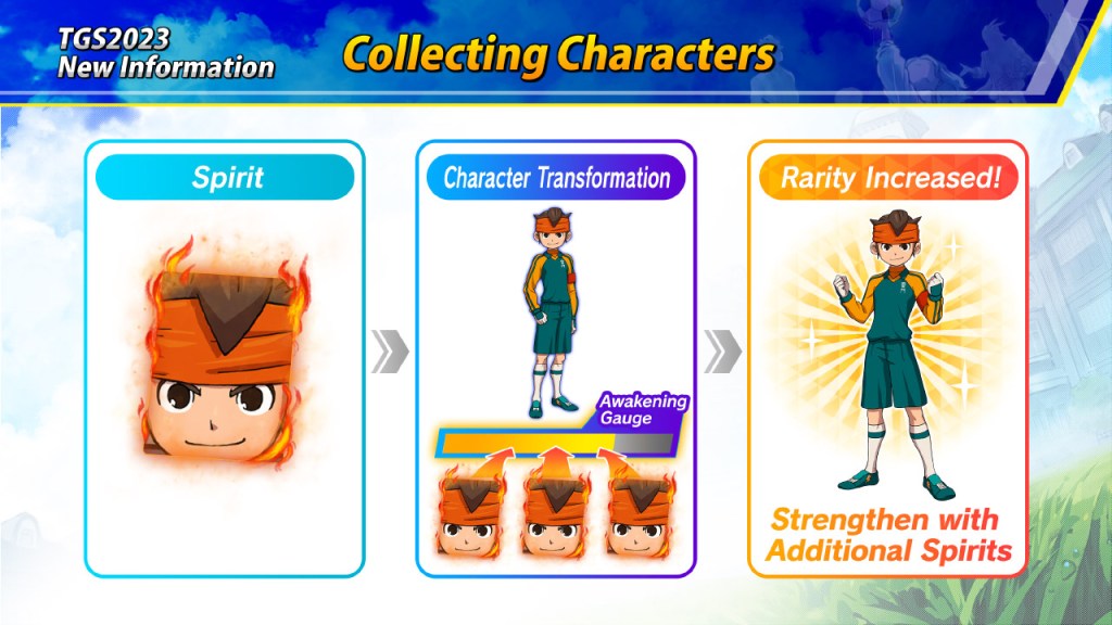 Le recrutement est finalement assez similaire à celui des jeux précédents, la principale différence étant la méthode d’acquisition de ces Esprits. Il sera possible de les obtenir dans le mode Histoire et dans le mode Chronicle (logiquement, uniquement pour les personnages exclusifs à chaque mode — on ne s’attend pas à obtenir la carte d’Endo dans le mode Histoire se déroulant à l’époque d’Unmei par exemple), mais on n’en sait pas beaucoup plus pour le moment. En dehors de récompenses de matches, faudra-t-il remplir certaines conditions comme les Kizunacks (Cartes Joueur) des jeux Inazuma Eleven Go pour obtenir des Esprits ?