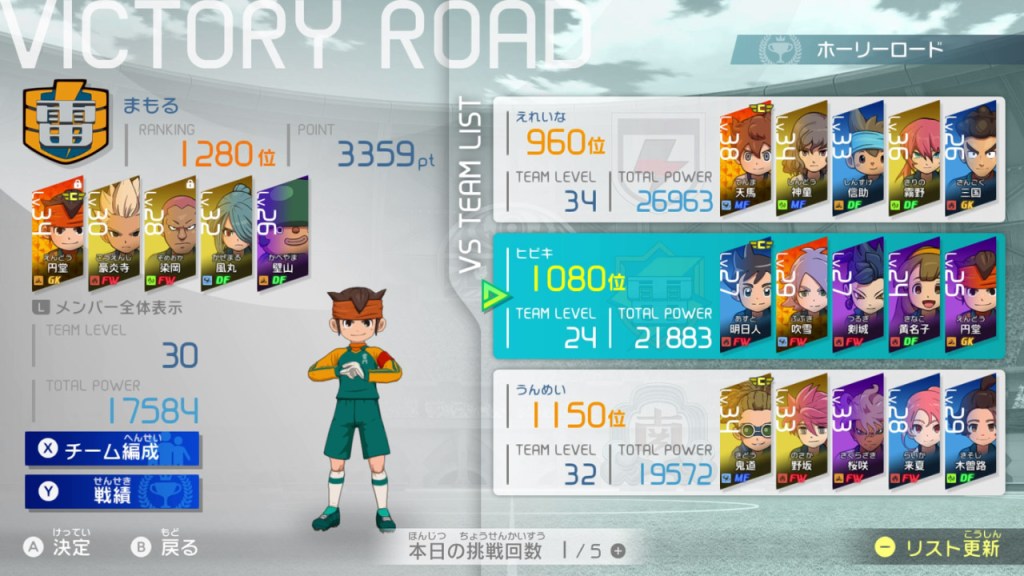 Notez bien que le mode histoire se déroulera comme dans les précédents jeux Inazuma Eleven. Ce que nous allons expliquer ici concerne la jouabilité après avoir fini l’histoire — c’est là que commence la vraie « Victory Road ».