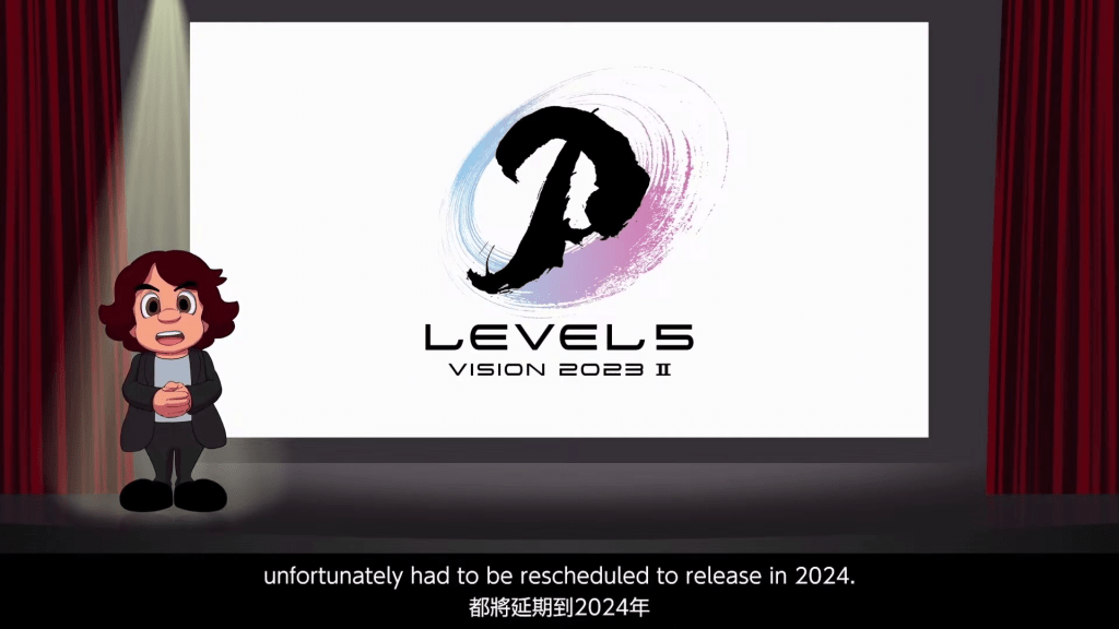 D’après Akihiro Hino, qui présentait l’événement, celui-ci avait pour symbole la lettre « P », pour « Vague Primordiale » (Primal Wave), « Prologue », ou encore « Prélude ». Le but de cette présentation était donc de marquer un nouveau départ pour Level-5, le début de leur « vague »… qui, il faut le dire, arrive un peu tard, l’année 2023 touchant à sa fin dans un mois, et sachant qu’à part Fantasy Life i qui avait été officiellement repoussé à 2024 il y a quelques semaines, et le nouveau Professeur Layton qui n’avait pas d’année de sortie, le reste de leurs jeux continuait d’afficher une sortie en « 2023 »… Hino en semblait conscient, car avant même de passer aux annonces, il a tenu à présenter ses excuses et annoncer la couleur : les jeux initialement prévus pour 2023 vont finalement être repoussés à 2024. On s’y attendait, mais c’est désormais officiel.