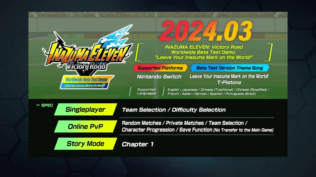 Mais qu’en est-il plus exactement d’Inazuma Eleven: Victory Road ? Si certains jeux comme Megaton Musashi: Wired ont pu bénéficier d’une date de sortie exacte, ce n’était malheureusement pas le cas de Victory Road, qui est pour le moment uniquement prévu pour l’année 2024 sans plus de précisions. En contrepartie, Level-5 avait quelque chose d’un peu plus concret et positif à annoncer : le lancement d’un bêta-test en mars 2024 !