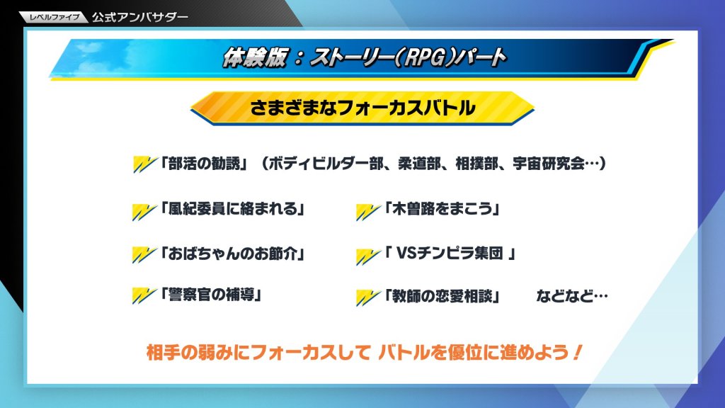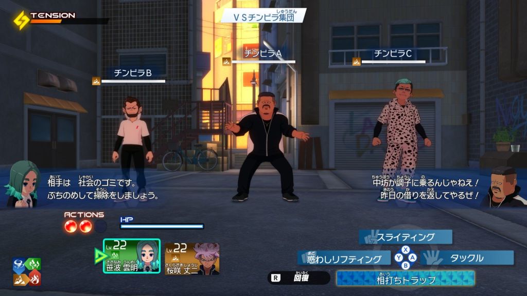 La principale nouveauté du mode histoire, ce sont les Focus Battles, qui avaient déjà été évoqués dans la dernière bande-annonce sans plus d’explication. Cette bande-annonce donnait l’impression qu’un Focus Battle allait se déclencher au moment où Sakurazaki se bagarre avec trois brutes dans une ruelle… et bien c’est exactement ce qui va se passer !