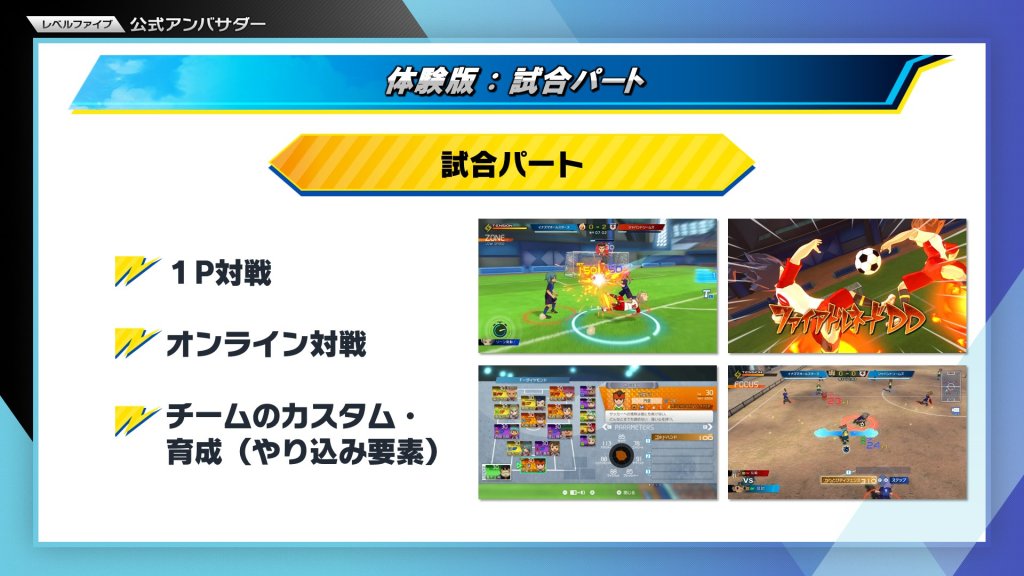 - Les joueurs pourront être sélectionnés comme coaches, c’est-à-dire qu’il sera possible d’avoir un personnage comme Tenma en entraîneur ! On ignore pour le moment ce que cela apportera à l’équipe et comment leurs talents seront appliqués.