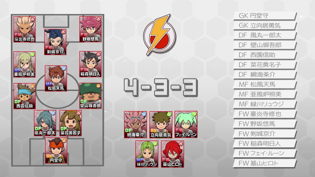 - Les techniques qui disposaient de nouvelles animations dans Inazuma Eleven Ares utiliseront leurs animations d’origine.